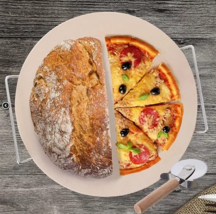 Okrogla šamotna plošča s podstavkom za peko v pizze – Perfect Home