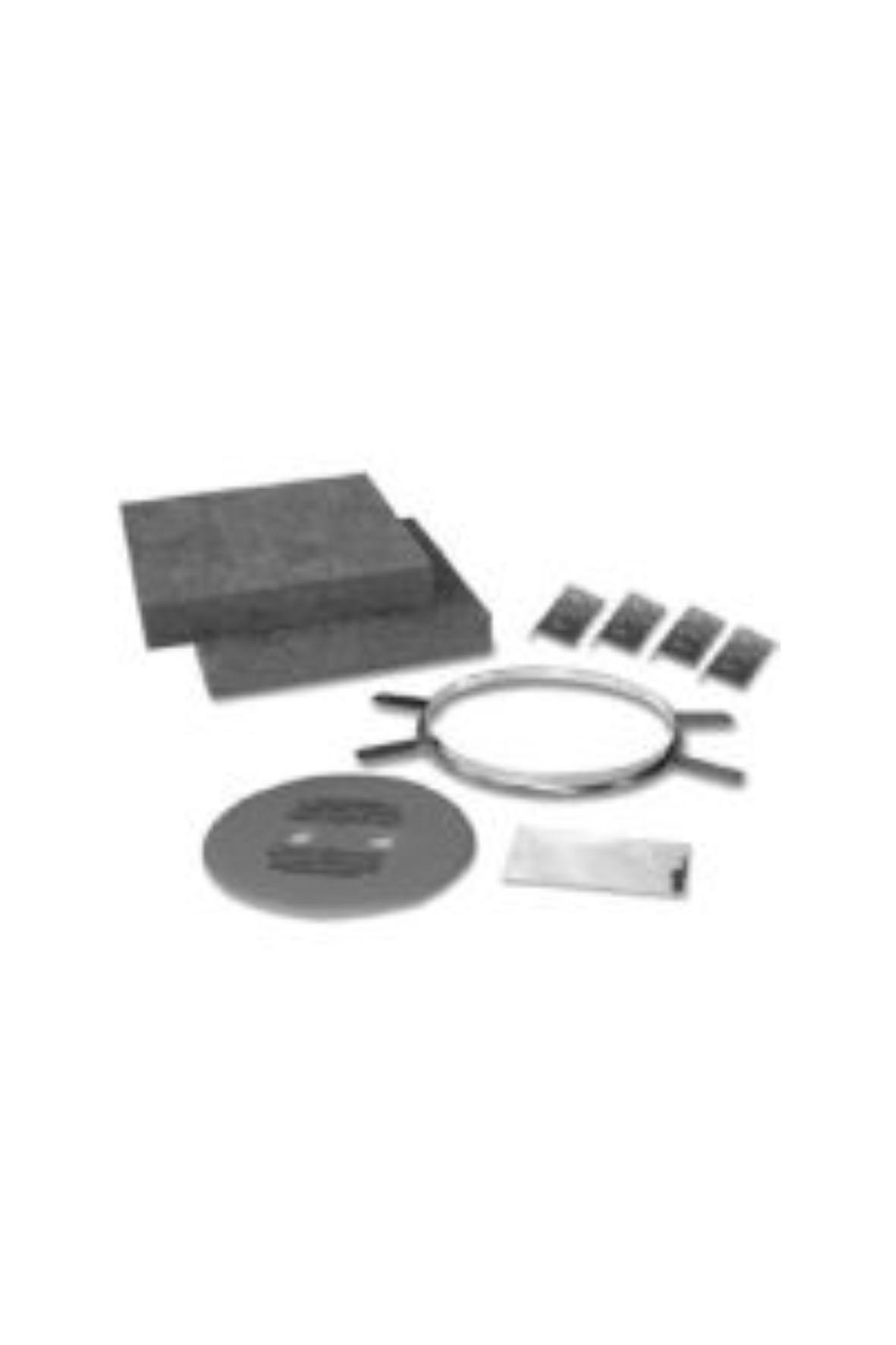 Vsebina paketa: nos priključka za vratca, izolacijski plošči za izolacijo priključka, nosilci izolacije, zaščitni obroč za ometavanje, zaščitni kartonast, pokrov priključka, vrečka z žebljički, navodila za montažo.