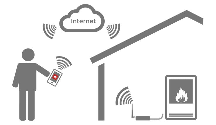 Način s povezavo omogoča krmiljenje peči izven vašega doma, medtem, ko v načinu brez povezave omogoča uporabo pametnega telefona kot daljinca za krmiljenje peči v neposredni bližini.