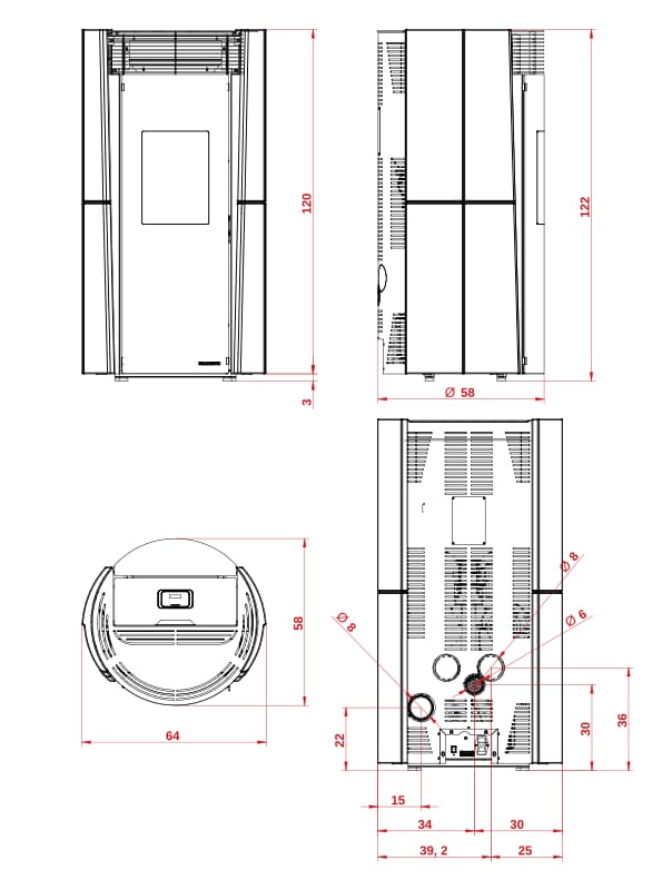 Peč je hermetično zaprta, tako da ne prepušča plinov in ne porablja zraka iz prostora.