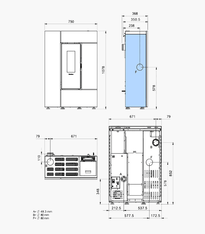 Premer dimnega priključka: 80 mm