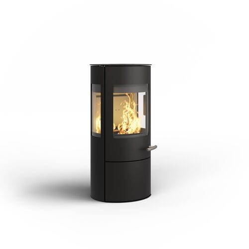 Kamin VITUS.L je visokokakovostna peč na drva, ki s svojo elegantno okroglo obliko in tremi velikimi okenci ustvarja še posebej vzdušno izkušnjo ob ognju. Plameni so vidni iz različnih kotov in ustvarjajo toplo, vabljivo vzdušje v dnevni sobi.