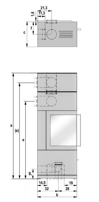Izvedba dimnika: vertikalno ø 150 mm (zgoraj ali zadaj)
