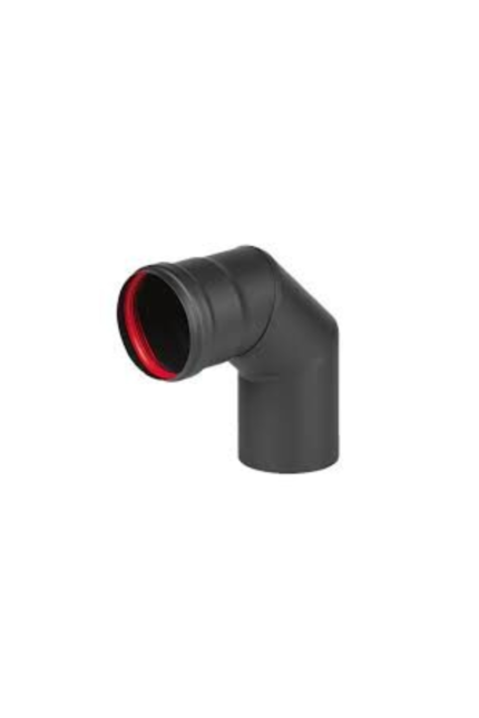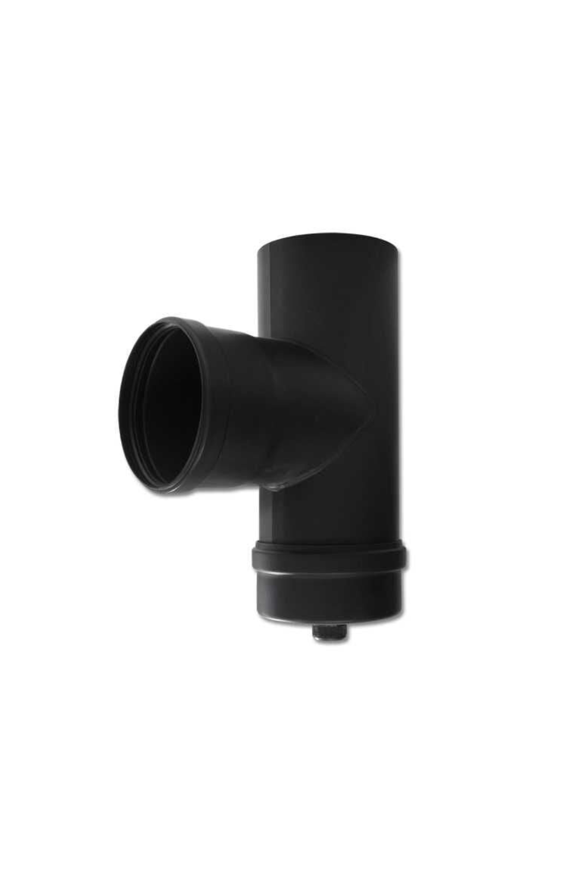 Dimovodna cev T – kos 90 st. s tesnilom in pokrovom v črni temperaturno odporni barvi primerna za peletne peči.