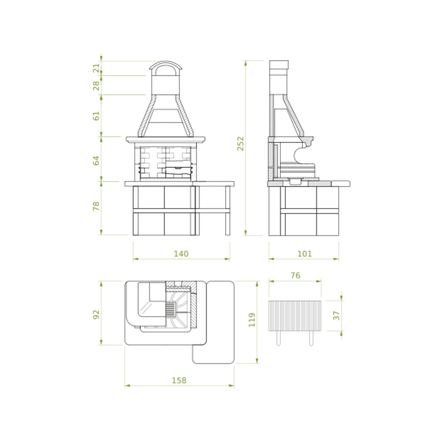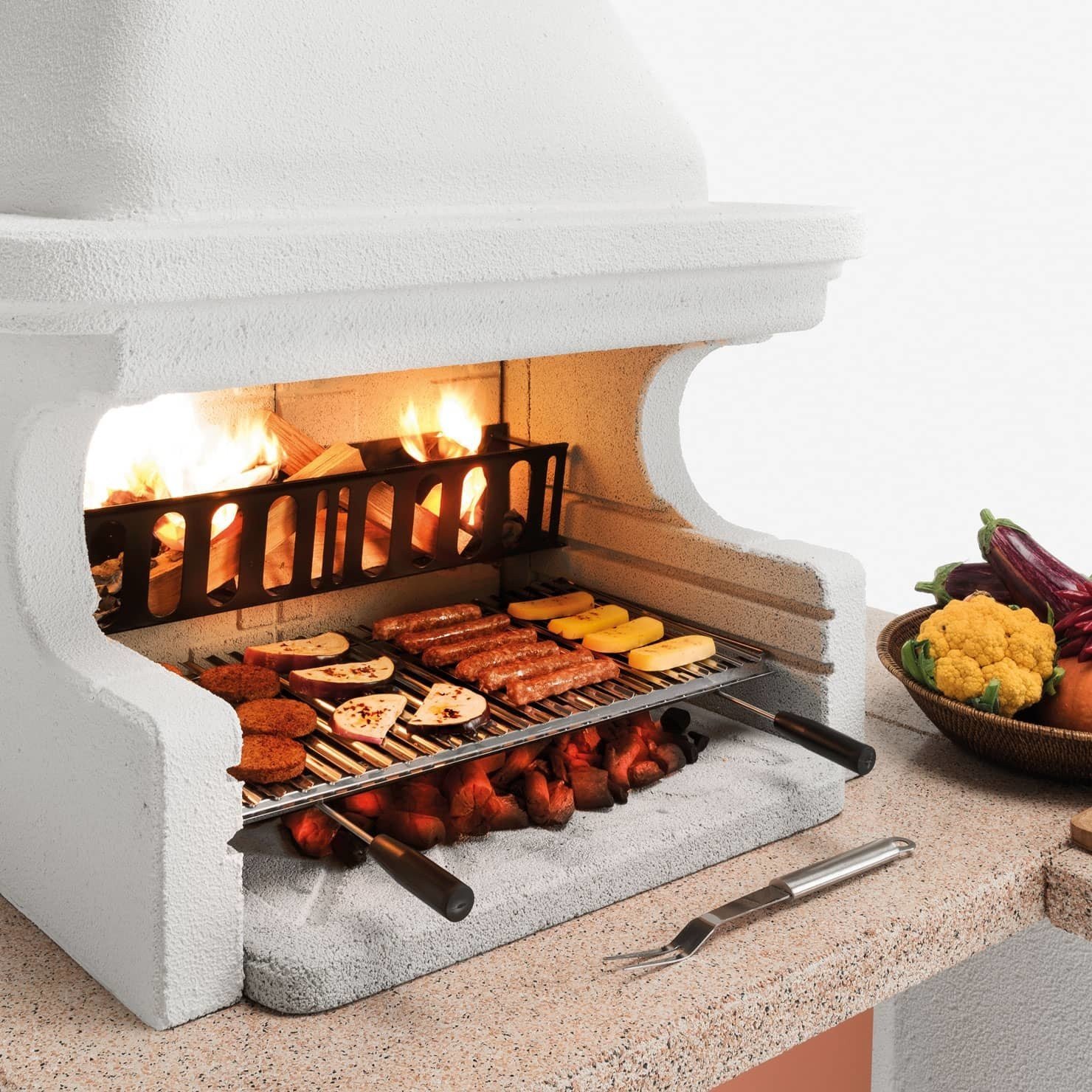 S kaminom dobite klasično rešetko za peko ter nosilec za drva na hrbtni steni kamina.